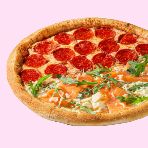 Соус томатный, сыр моцарелла, колбаса пепперони x2, сушёный базилик.