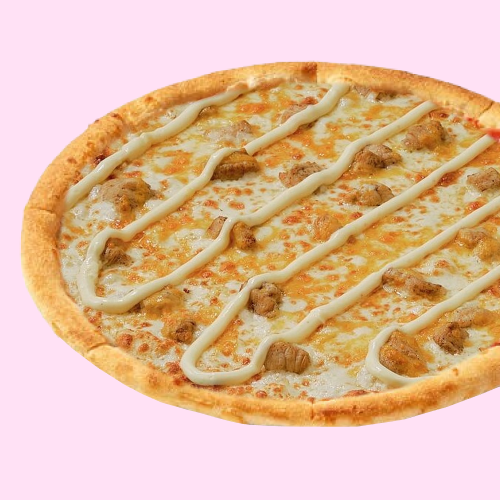 Курица, сыр моцарелла, сыр чеддер, чесночный соус, соус сырный